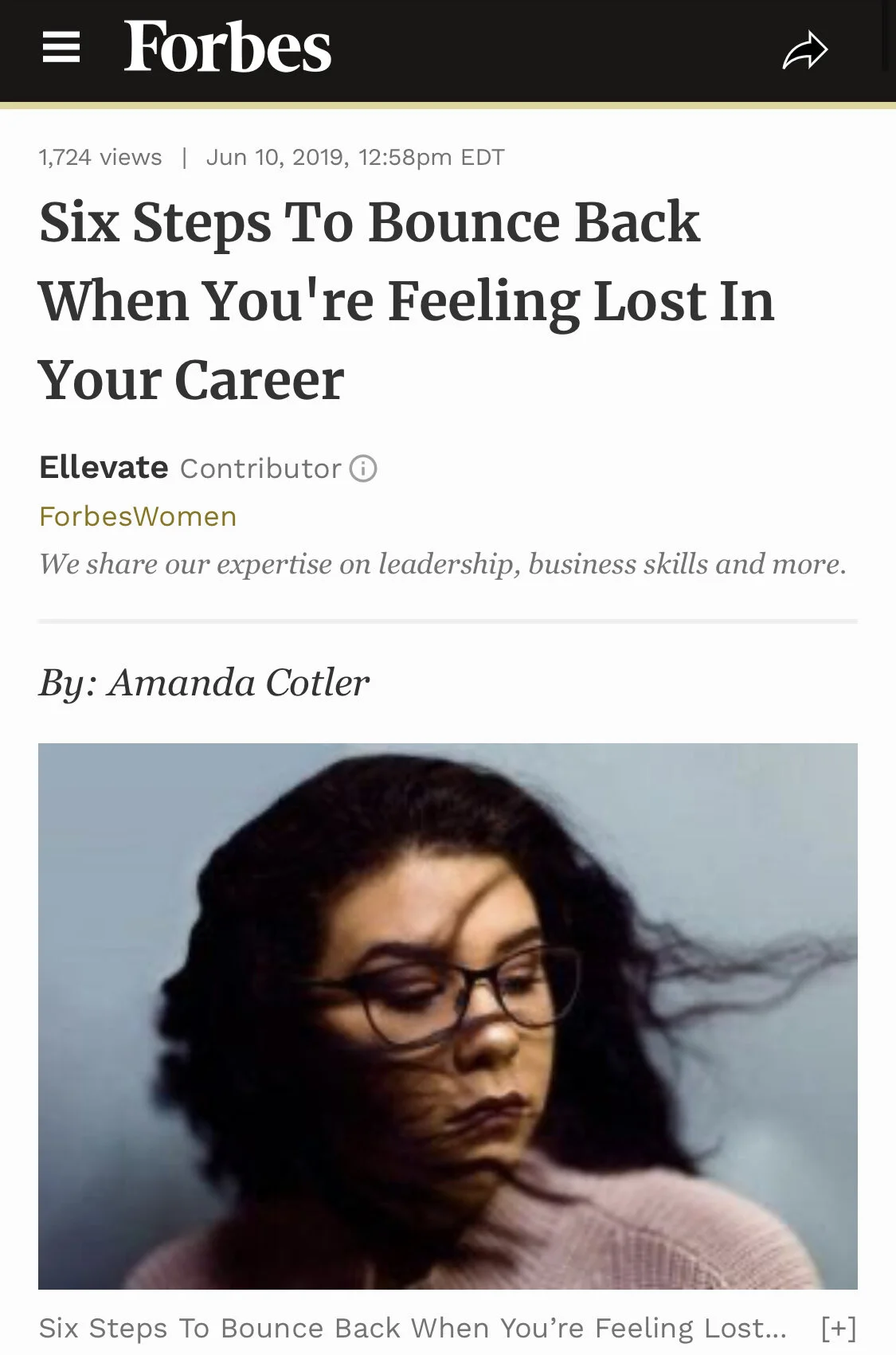 FORBES- Six Steps To Bounce Back When You’re Feeling Lost In Your Career May 27 Written By Amanda Cotler Read From Forbes Here Amanda Cotler